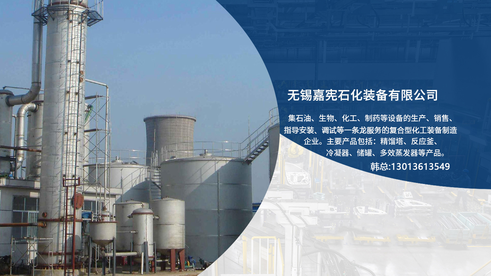 無錫嘉憲石化裝備有限公司地處風景秀麗的太湖之濱素有中國化工設備之鄉----無錫南泉。與美麗如畫的太湖相鄰。北依滬寧高速、京滬鐵路、京杭大運河,南距環太湖高速南泉出口處2000米,東接312國道,西連接錫宜高速。是一家是集石油、生物、化工、制藥等設備的生產、銷售、安裝、調試等一條龍服務的復合型化工裝備制造企業。公司技術力量雄厚,生產設備齊全,生產工藝先進,質量上乘,價格合理,售后完善,贏得了廣大用...